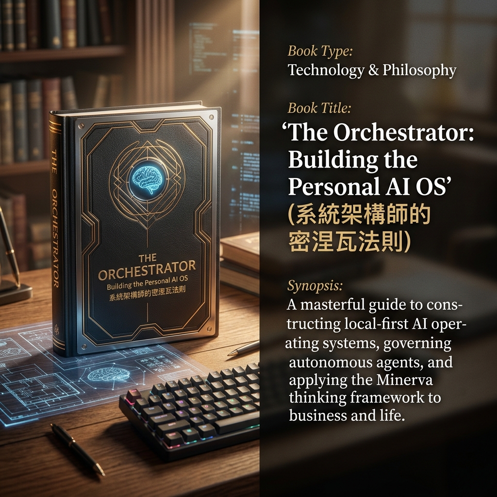 這是我用 Gemini 生成的版本,書名是《系統架構師的密涅瓦法則》(The Orchestrator),看起來是不是很有一人公司 AI 架構師的科技感呢?
