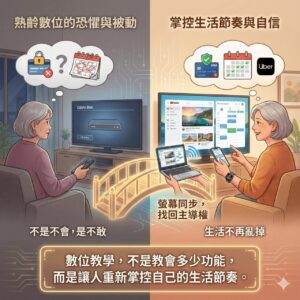 結合AI應用、數位工具教學與熟齡學習經驗,專注於中高齡與中小企業的數位轉型輔導,擅長從0到1建構數位素養。