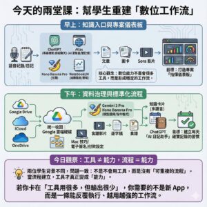 善用Evernote、Heptabase、Telegram等多款工具,打造AI第二大腦與一元筆記系統,協助學員從資訊收集到知識轉化。