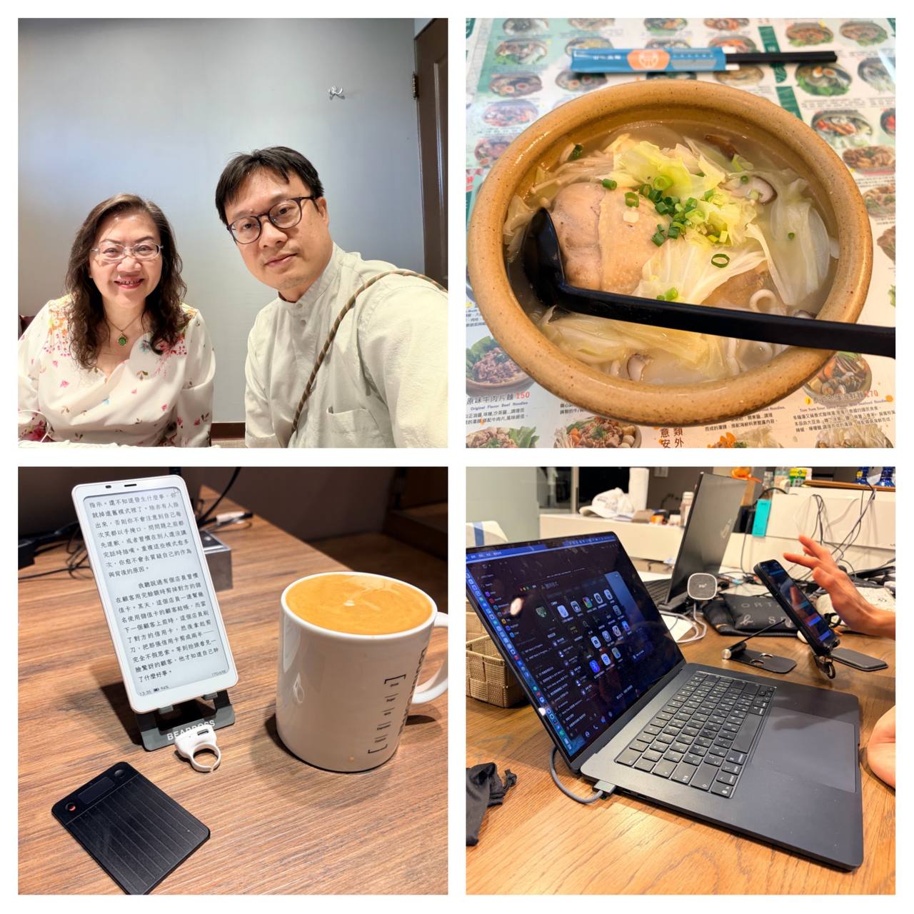 中午則選擇步行往下午學生家方向移動,途中在甘泉魚麵吃雞腿麵,邊看 YouTube 邊慢慢吃,實踐《真原醫》裡學到的細嚼慢咽習慣。之後到路易莎喝咖啡,看電子書並回覆學生關於 iPhone 17 容量選購的問題。
