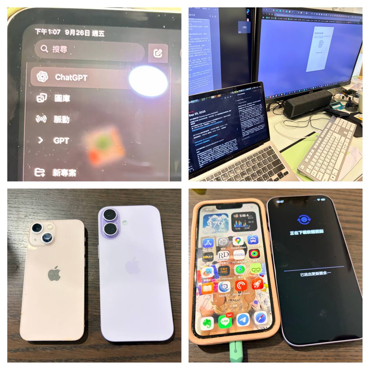 晚上回家後,收到幫兒子買的兒童手錶卻只有錶帶,老婆決定退貨並重新下單。另一個重點是老婆的新 iPhone 17 紫色款到貨,我花了約一小時二十分完成從 iPhone 13 mini 的資料轉移,只是 Evernote 登錄出了點問題,先暫時放著。