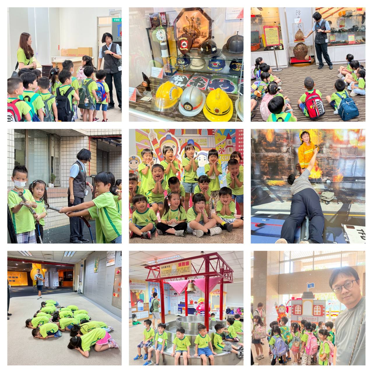 九點前抵達集合地點,我陪著小悠悠的班級一起搭車前往內湖的防災科學教育館。沿途測試 Relive 這個軌跡記錄軟體,順便看看電子書。到了館內,導覽老師是一位退休高中老師,講解消防歷史、器材演進,還帶著孩子們實作滅火、穿消防衣拍照。輪到小悠悠時,老師特別設計讓他「救爸爸」,我趴在地上裝傷患,他很努力地拉我,那一幕被老師拍下,真有趣也很暖心。之後孩子們體驗地震七級的震度、煙霧避難與護頭姿勢,整個上午的活動既生動又實用。