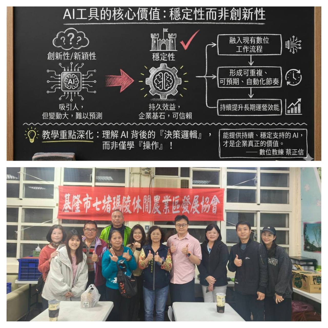 今天下午的教學我來到基隆七堵山上的瑪陵農產品展售暨遊客服務中心。這裡下午有一個餅乾DIY活動,我提前到達並準備好教學所需的簡報材料。最近我的設備準備得非常齊全,隨身攜帶了延長線、麥克風以及行動電源等,確保教學過程中不會遇到技術問題。等到DIY活動結束後,當地的社區發展協會理事長來找我詢問AI相關問題,我也進行了解答。