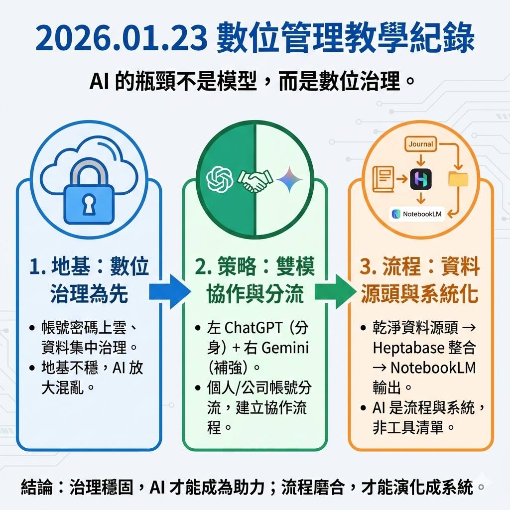 今天的教學再次驗證一件事:AI 的瓶頸從來不是模型,而是數位治理。