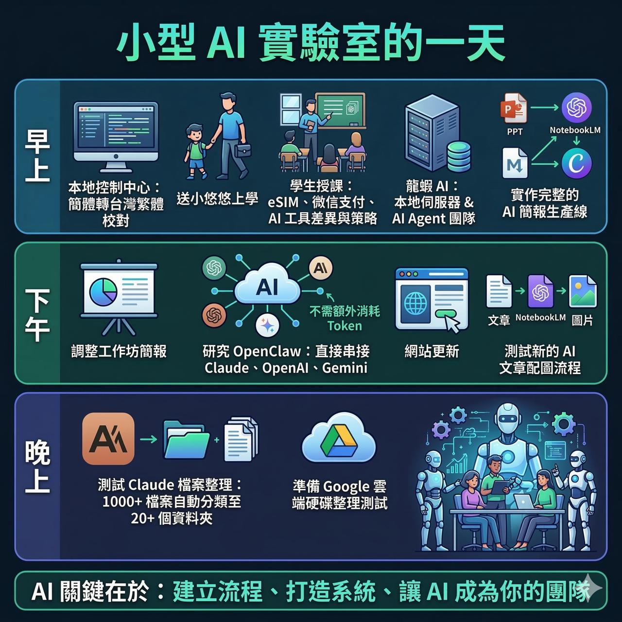 今天的節奏,其實像一個小型 AI 實驗室的一天。