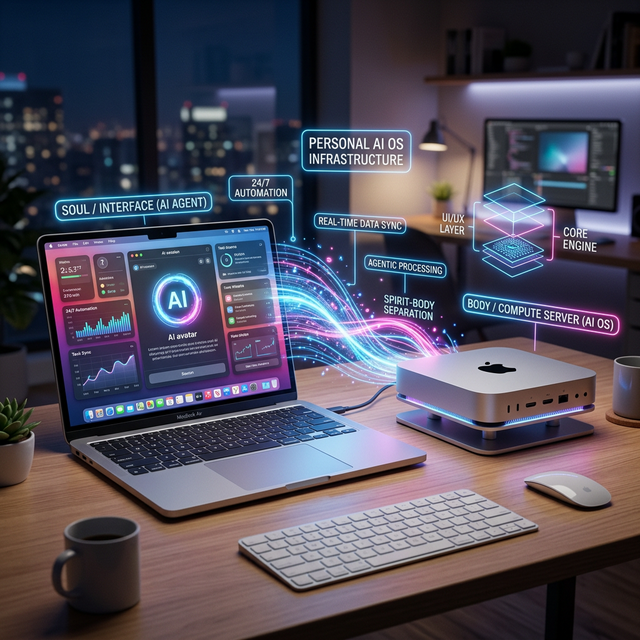 • Mac mini = 肉身:它 24 小時待在家裡或辦公室,插著電、接著網,永遠不關機。它是你的算力大腦、自動化工廠、情報中心。