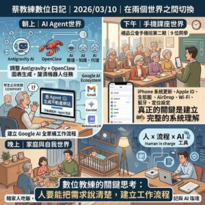 我是數位教練蔡正信,擁有豐富的系統建構與企業陪跑經驗。在 AI 飛速發展的今天,讓我協助你將這些技術化為你最強大的「虛擬合夥人」。