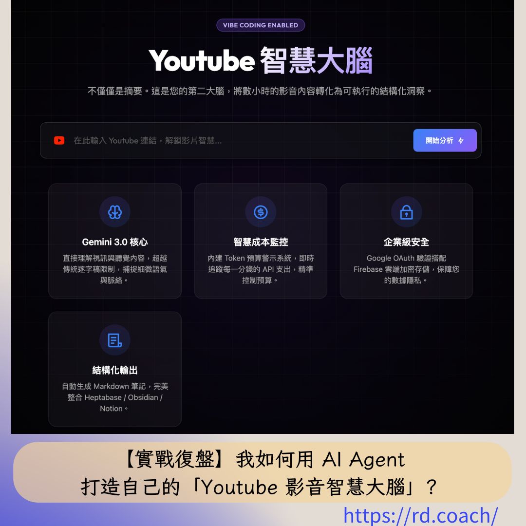 - 無法自動化:你必須手動餵資料。但我希望未來能做到「訂閱頻道 -> 自動分析 -> 推送日報」的全自動化流程。